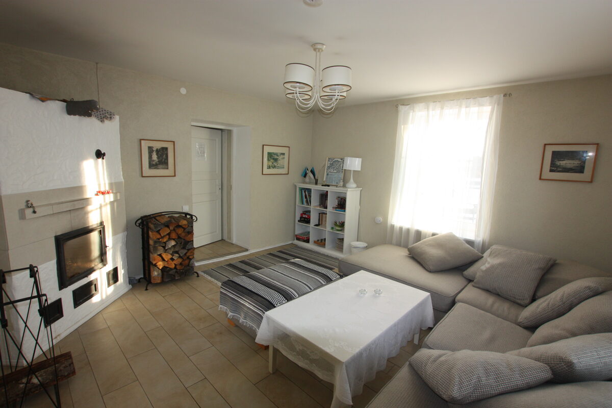 Elutoas paikneb suur nurgatiivan, diivanilaud, raamaturiiul erinevate lauamängudega ja kaminahi.