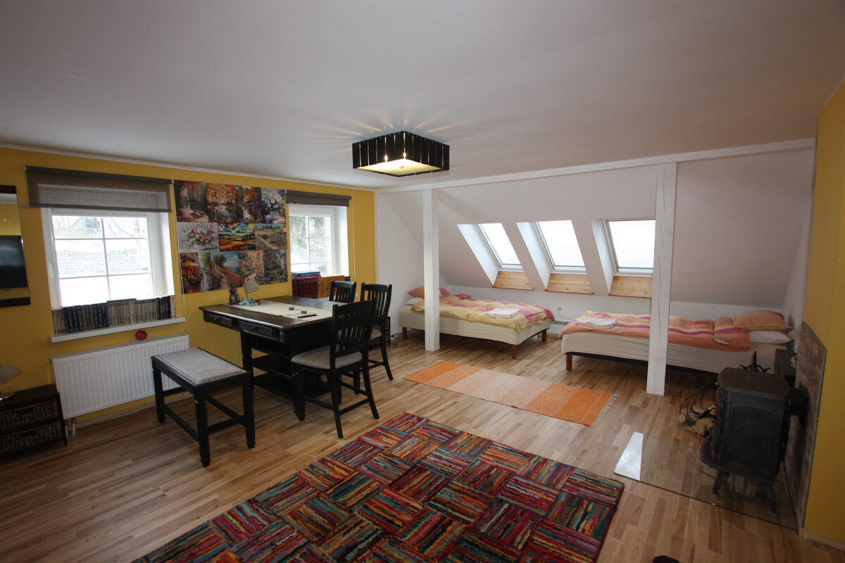 Vahekorruse rahulik õhkkond loob ideaalsed tingimused kasegamatuks malemänguks, lugemiseks või vaikseks omaette olemiseks. Vajadusel on võimalik diivan kahele magamiseks lahti teha.