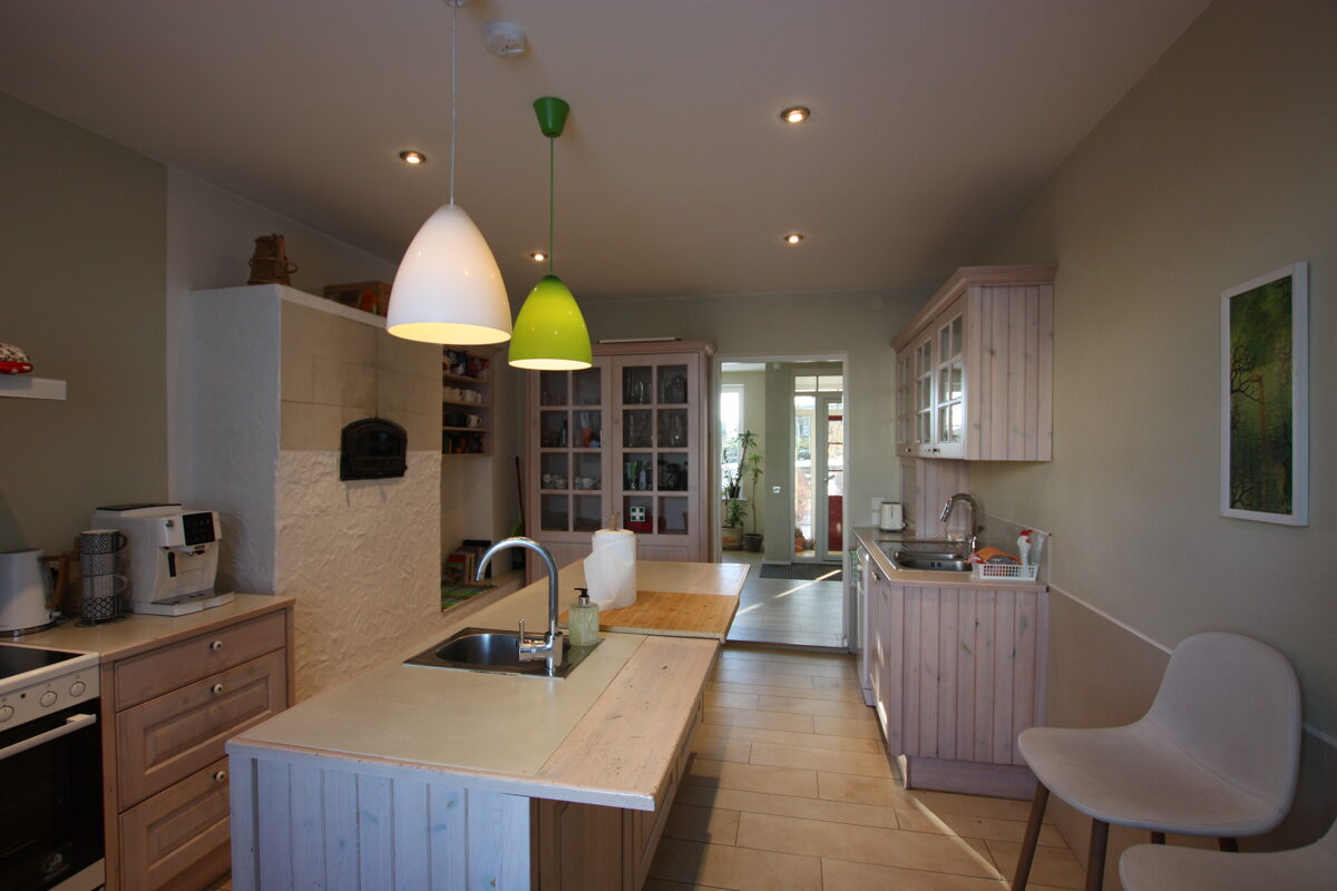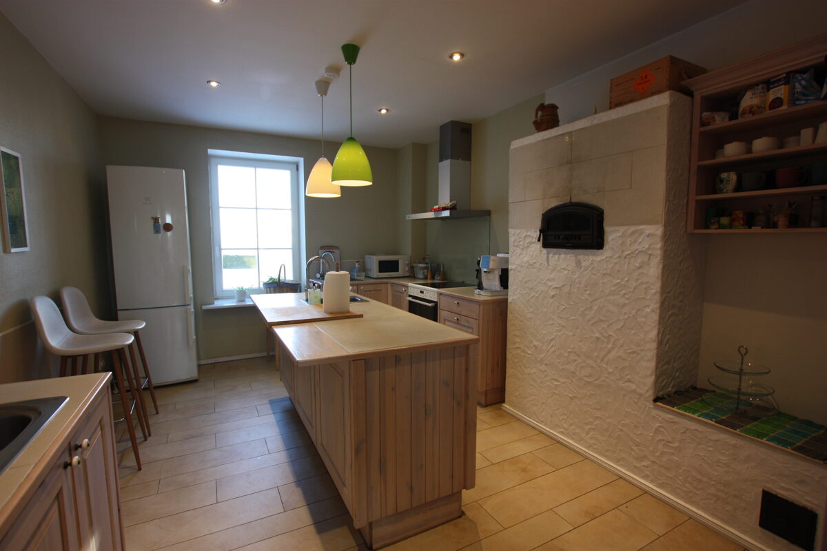 Valgusküllane köök on varustatud kõige vajalikuga toidu valmistamiseks ning lauanõudega, et katta pidulik peolaud kuni 22 inimesele. Köögis on piisavalt ruumi ja vahendeid, et mugavalt teenindada ka suuremat seltskonda.